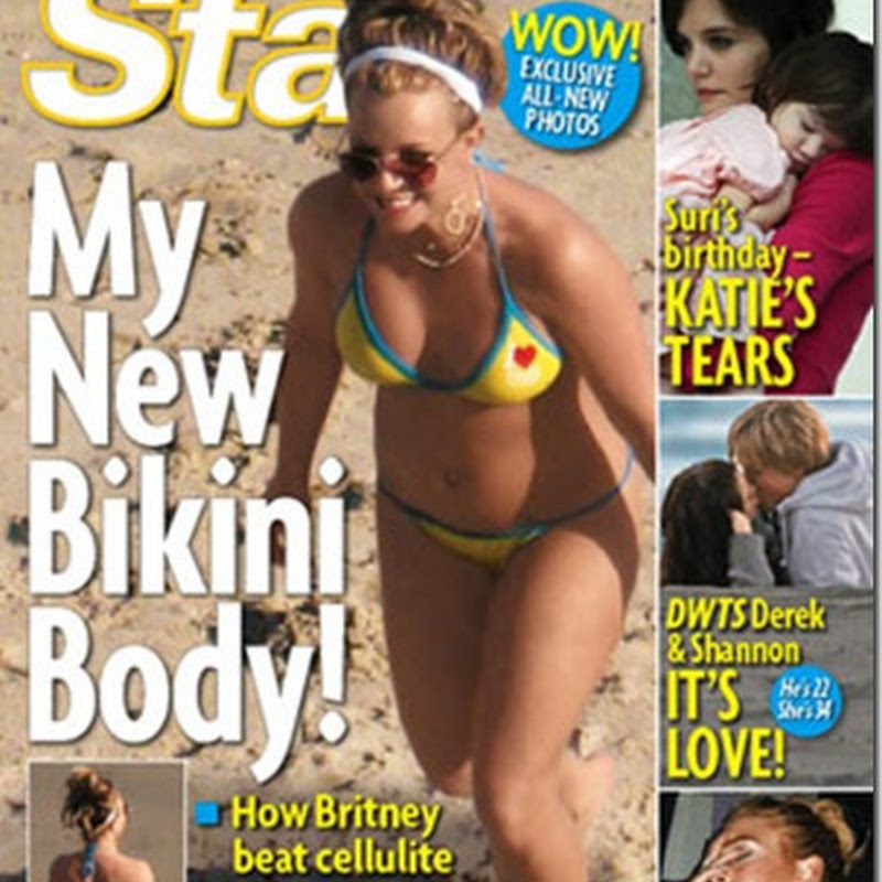 Britney Spears new bikini body picture covers the May 5 issue of Star magazine. Britney looks happy and hot at a Malibu beach as she has dro...